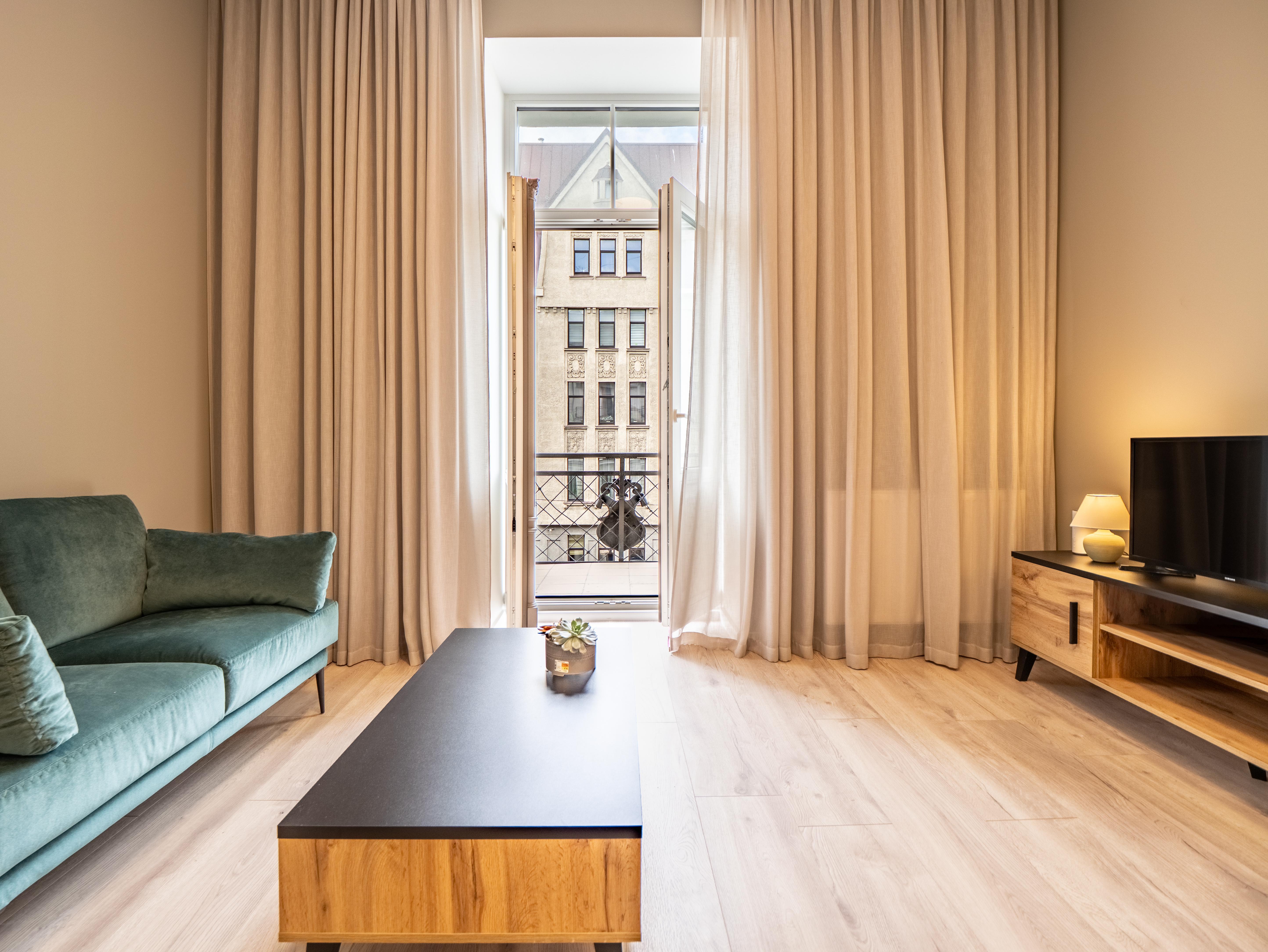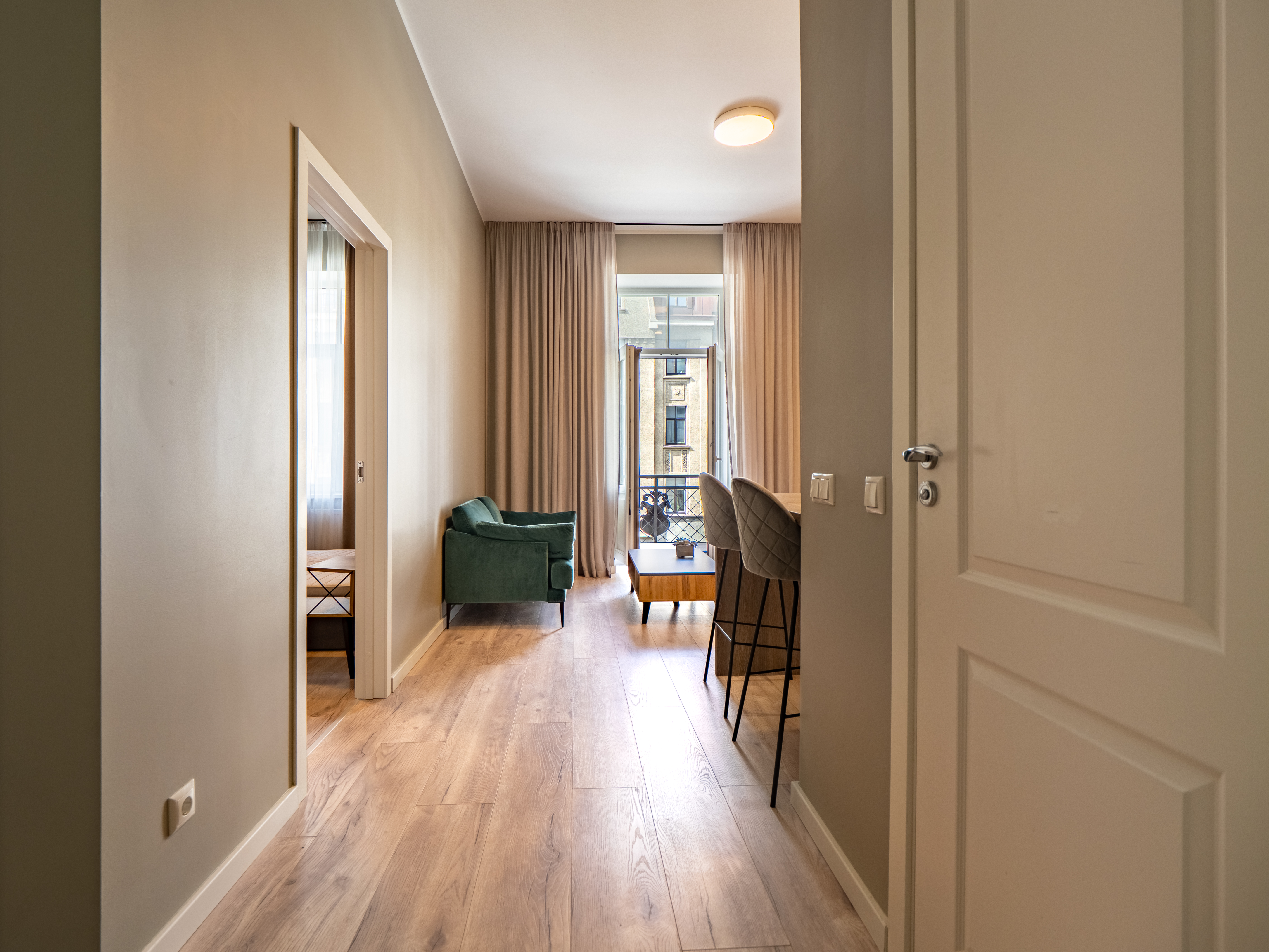 Opportunity to rent an elegant and fully furnished two-room apartment, in a renovated Art Nouveau building with a rich history. The apartment has high ceilings - 3.40 m. Its layout provides a living room combined with a kitchen and an exit to the balcony, an isolated bedroom with a large closet, a corridor with a built-in closet and a modern bathroom. An ideal place to live in the most prestigious area of ​​Riga.