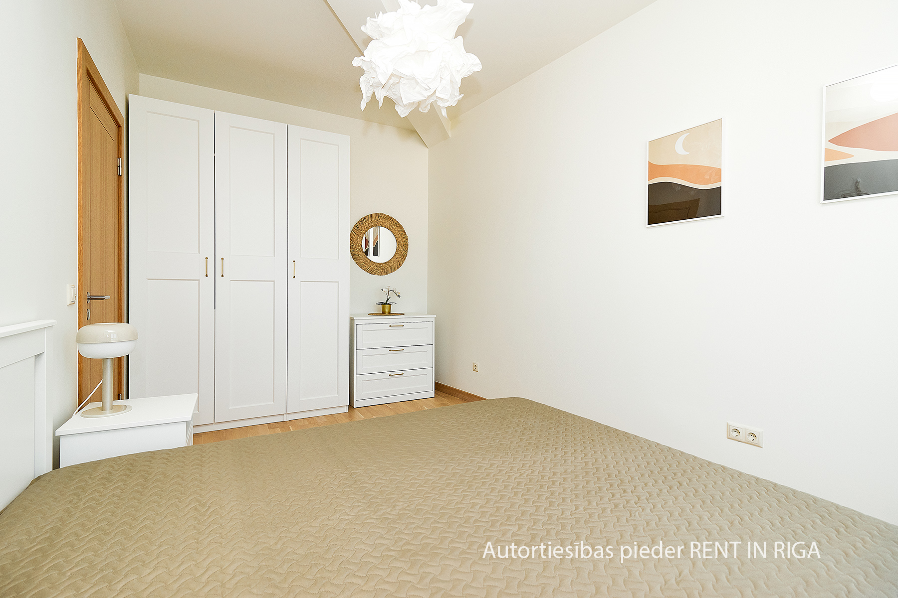 Aprīkots ar gaumīgām mēbelēm, plašiem iebūvētajiem skapjiem, gaismekļiem un aizkariem. Virtuvē gaumīga iekārta ar sadzīves tehniku - cepeškrāsni, plīti, ledusskapi un tvaika nosūcēju. Vannas istaba ar vannu un apsildāmo grīdu, te ievietota arī veļamašīna Jūsu ērtībām.