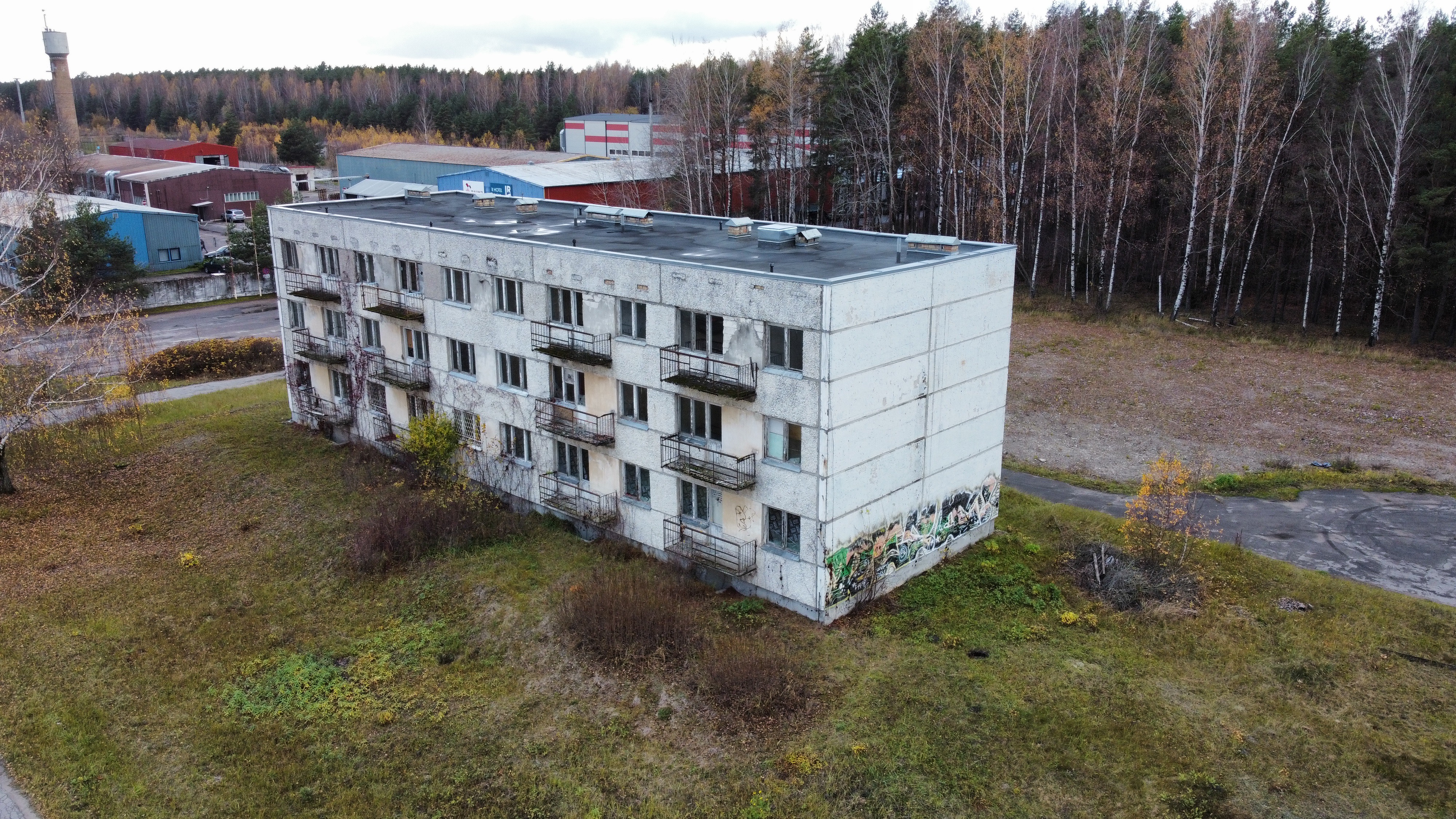 Dzīvokļu ēka renovācijai. Īpašums sastāv no : 1) Zeme 7124 m2; 2) ēka 1120 m2 (lietderīgā platīva 795 m2); + Ēka līdz 2006. gadam tikusi izmantota kā dienesta viesnīca; + pēc pašreizējā plānojuma ēkā ir 12 dzīvokļi; + Rūpnieciskās apbūves teritorija, kurā iespējams realizēt ieceres, kā: 1) Biroji; 2) Pakalpojumu iestādes; 3) noliktavas apbūve; 4) dienesta viesnīca. u.c.