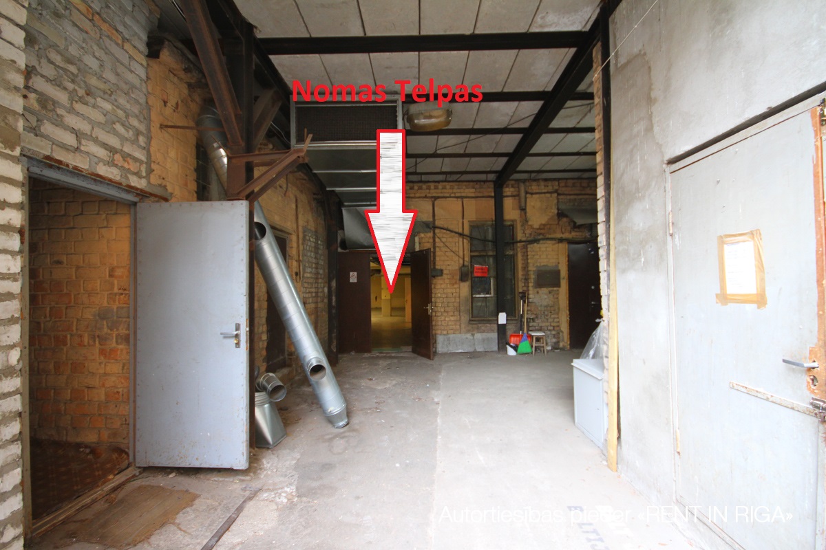 Ir izbūvēts sanmezgls, pāris nelielas palīgtelpas. Preces piegāde no pagalma puses (divviru metāla durvis). Nomas maksa 5 EUR m2/mēnesī. Apsaimniekošana 45 EUR/mēnesī.