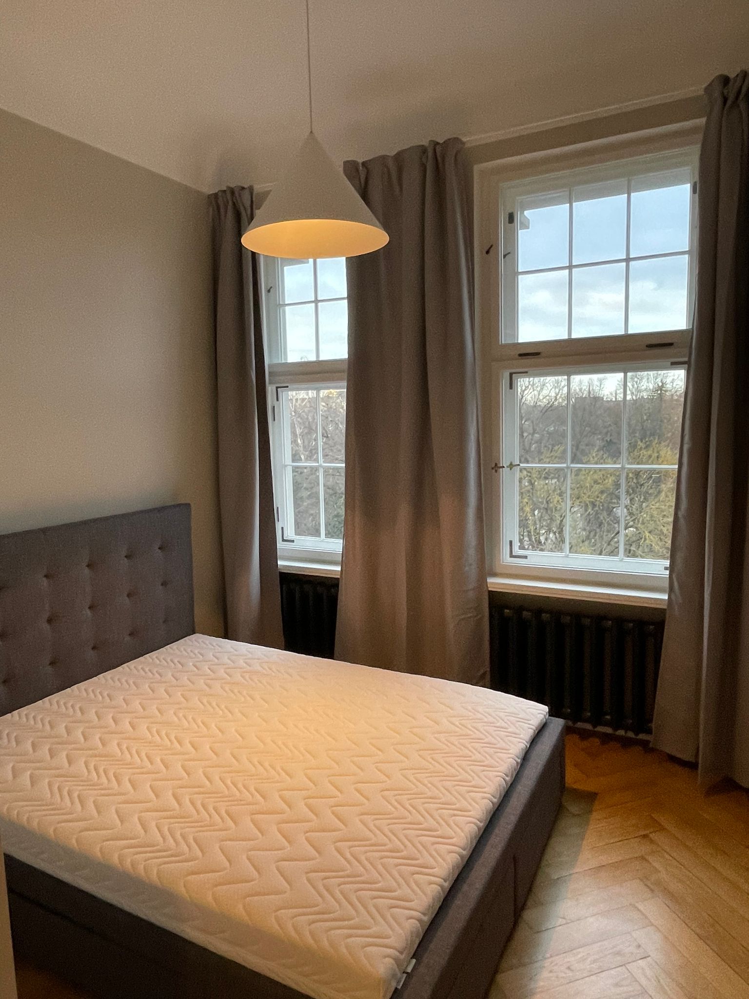 Tiek izīrēts 2 istabu dzīvoklis prestīžajā Bibliotēkas nama ēkā. Ēka celta 1910.gadā neoklasicisma stilā, arhitekts Ernests Pole. Ēka tika pilnībā restaurēta 2020. gadā. Dzīvoklī: guļamistaba, viesistaba apvienota ar mūsdienīgu virtuvi, vannas istaba. Viena no privilēģijām ir skats uz Vērmanes darzu tieši no dzīvokļa. Dzīvoklis ir tikko remontēts, ar jaunām mēbelēm. Atrodas 5.stāvā, ir lifts. Individuālie ūdens un siltuma skaitītāji ar iespēju regulēt apkures jaudu. Ir veļas mašīna, trauku mazgājamā mašīna, ledusskapis.