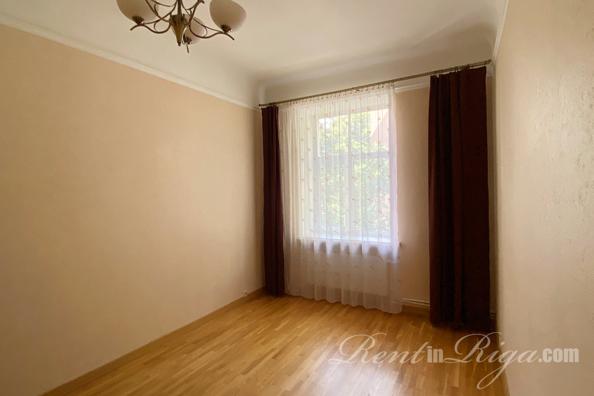 Dzīvoklī saglabājušies vēsturiskie griestu dekori. Dzīvoklis kluss - visi logi uz pagalmu, divas ārdurvis.