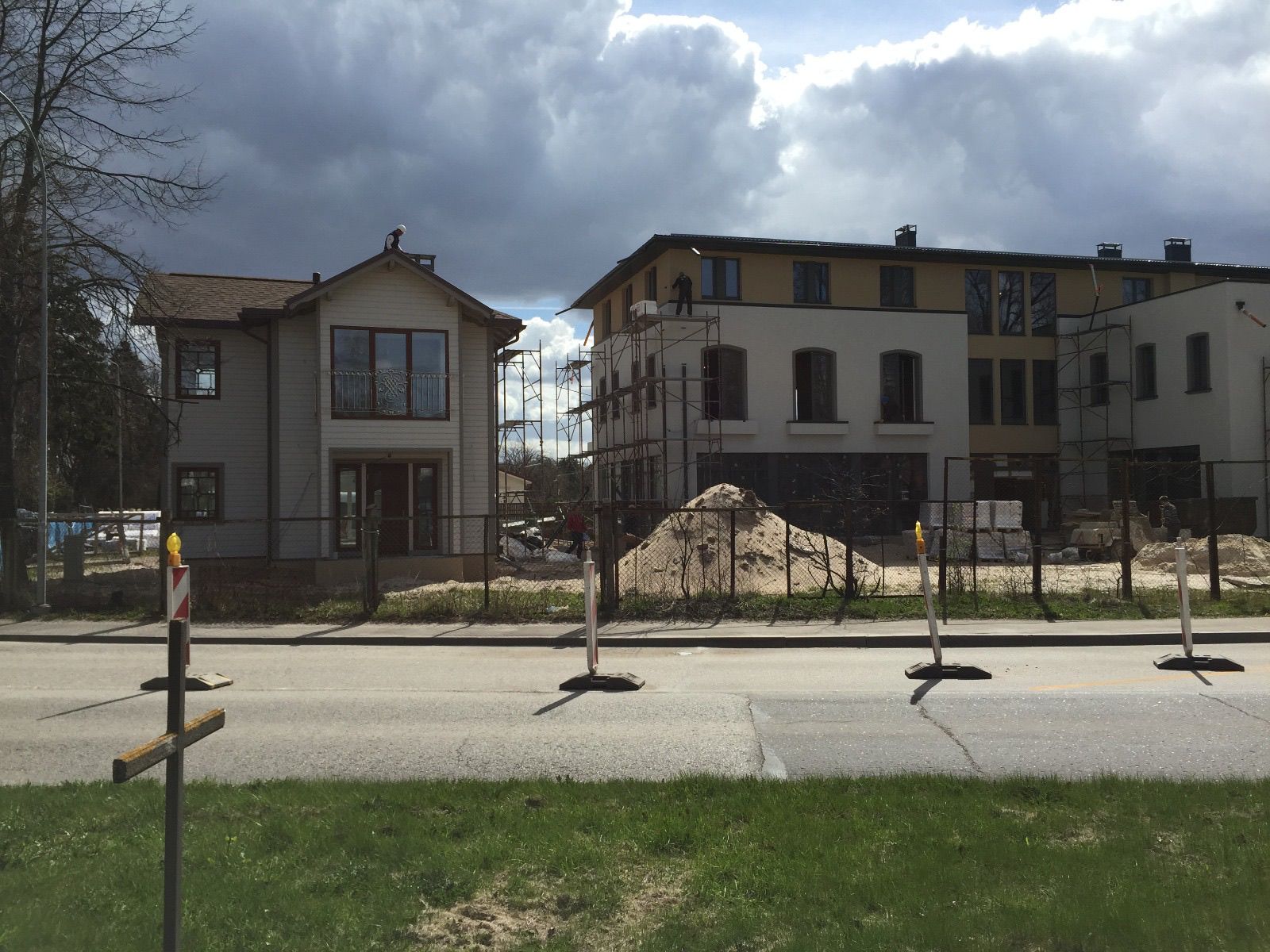 Celtniecība un apdare pabeigta 90% apmērā. Ēka būvēta no keramzītbetona blokiem, visi stāvi ir monolītbetons.