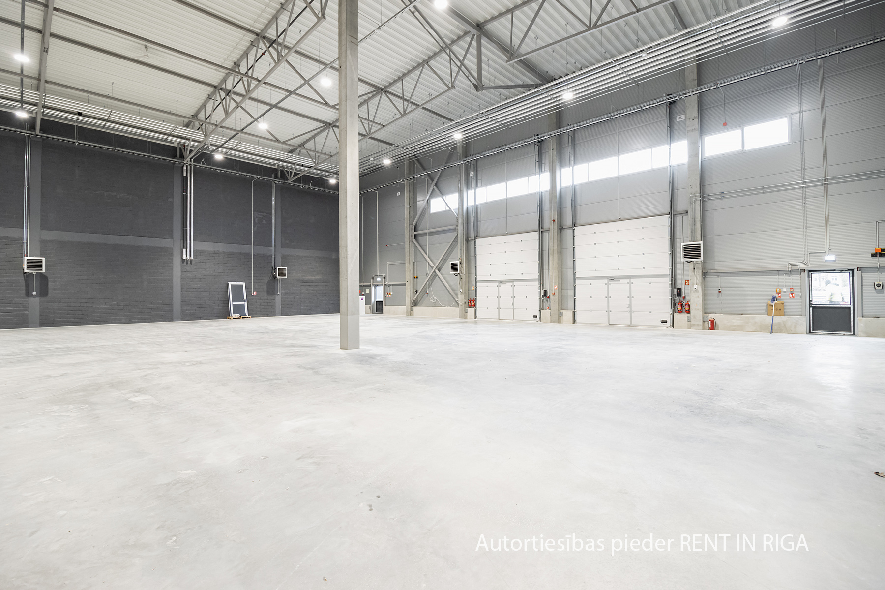 Jaunas noliktavas telpas Šampēterī. + 1. stāvs. + Izmantojamais griestu augstums- 8.6 m. + Industriālā betona grīda. + 2 Vārti zemes līmenī. + Gāzes apkure ar regulējamu temperatūras režīmu. + Kolonnu tīklojms 9x18m. + Pieejamā elektrības jauda līdz 850 kw. + Biroja telpas pēc nomnieka plānojuma un specifikas. + Autostāvvieta. + Nožogota/apsargājama teritorija. + 24/7 sargā dzīvā apsardze. Apsaimniekošanas maksa 0.60 EUR/m2.
