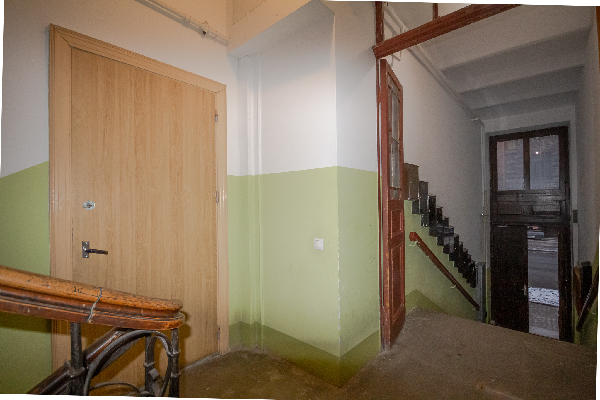 • Ēkas raksturojums: ieeja no ēkas fasādes, pakešu logi, plaši skatlogi, fasādes māja, pirmskara māja